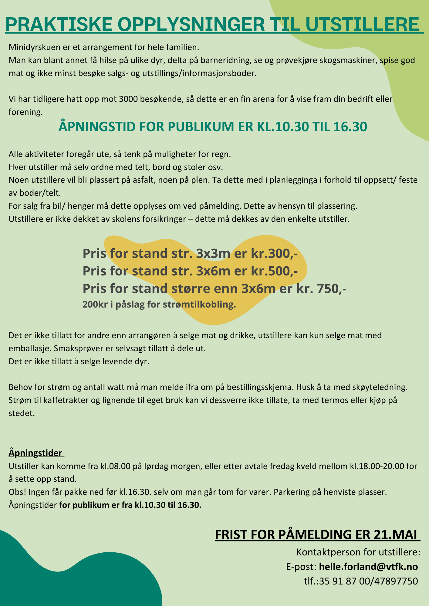 Til deg/dere som ønsker å delta som utstiller finner du mer informasjon om dette her: Info til utstillere